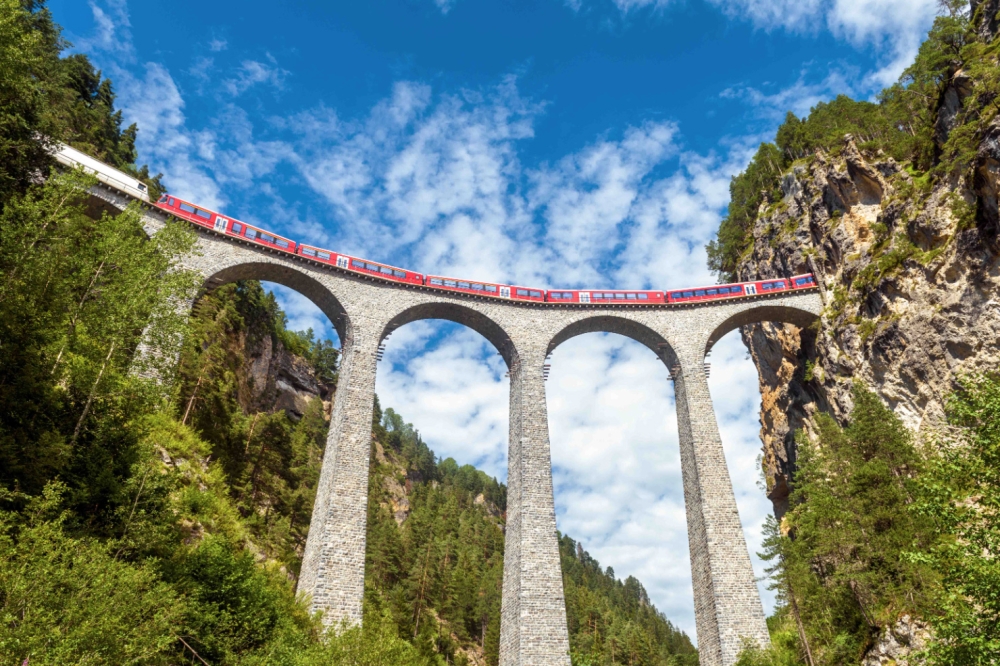 Often called the slowest express train in the world, the Glacier Express is one of Europe’s most iconic rail journeys. It connects Zermatt and St. Moritz, crossing nearly 300 bridges and passing through dramatic Alpine scenery that feels almost unreal.