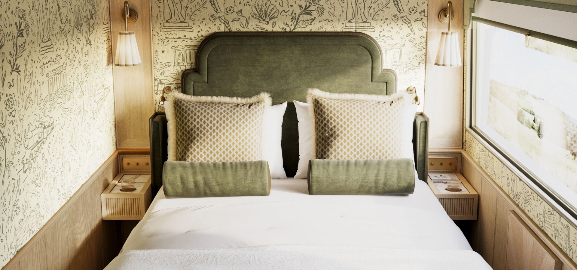 See Britain through new eyes aboard the Belmond Britannic Explorer, the first-ever luxury sleeper train in England and Wales, offering an elegant journey through iconic landscapes.